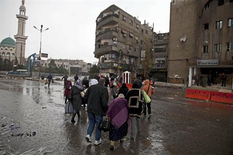 Pengungsi Palestina di kamp Yarmuk, Damaskus: harus mengungsi lagi dari kamp pengungsian. foto: Daily Star