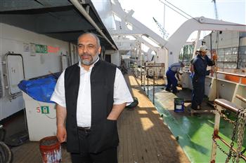 Presiden IHH, Bülent Yildirim, di atas kapal Mavi Marmara. foto: Hurriyet Daily