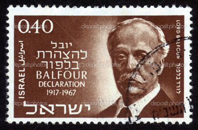 Zionis Yahud berterima kasih kepada Menlu Inggris James Balfour karena mendukung resminya perampokan tanah Palestina, dengan menerbitkan perangko edisi “James Balfour”. foto: Deposit Photos