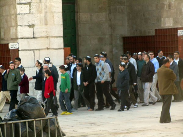 Pemukim-pemukim Yahudi ilegal semakin sering melakukan baris-berbaris masuk Masjidil Aqsha dengan pengawalan serdadu. Provokasi sekaligus menguji umat Islam. foto: Elders of Zion