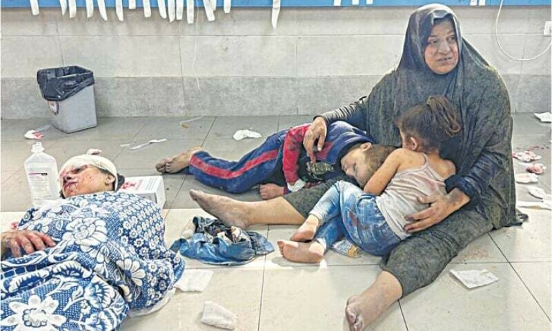Seorang wanita Palestina menghibur anak-anaknya, yang ikut terluka dalam serangan ‘Israel’, di Rumah Sakit Shifa di Kota Gaza. Foto: Reuters