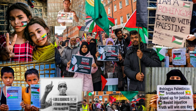 Kumpulan foto warga Rohingya dari Bangladesh hingga Irlandia yang menunjukkan solidaritas pekan ini terhadap warga Palestina di tengah operasi militer mematikan ‘Israel’ di Gaza. Foto: Korim Ullah