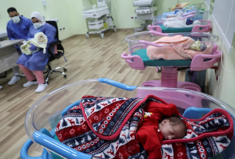 Bayi-bayi yang dievakuasi dari Gaza dirawat di Kairo, Mesir, pada tanggal 6 Desember 2023, di tengah operasi militer ‘Israel’ yang tiada henti terhadap daerah kantong Palestina, yang menyebabkan rumah sakit, sekolah, dan rumah tempat tinggal dihancurkan. Foto: Amr Abdallah Dalsh/Reuters