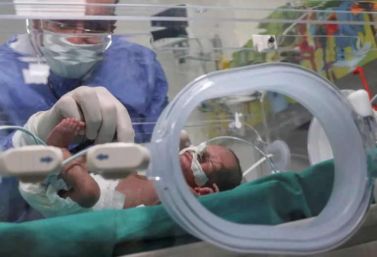 Seorang bayi prematur Palestina yang dievakuasi dari Gaza menerima perawatan di Rumah Sakit Ibu Kota Administratif Baru [NAC], di timur Kairo, Mesir, pada 6 Desember 2023. Foto: Amr Abdallah Dalsh/Reuters