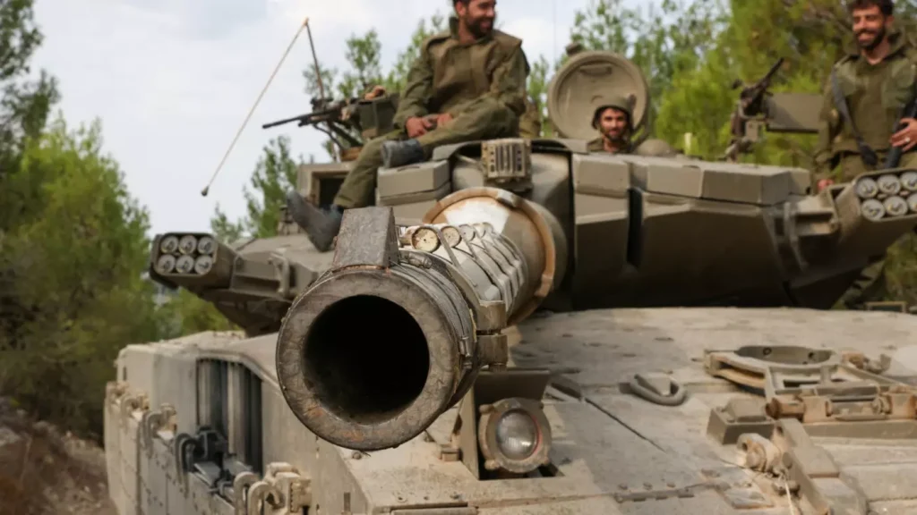 Gerombolan serdadu ‘Israel’ mengendarai tank Merkava di ‘Israel’ utara pada 9 Oktober 2023 (AFP/Jalaa Marey)