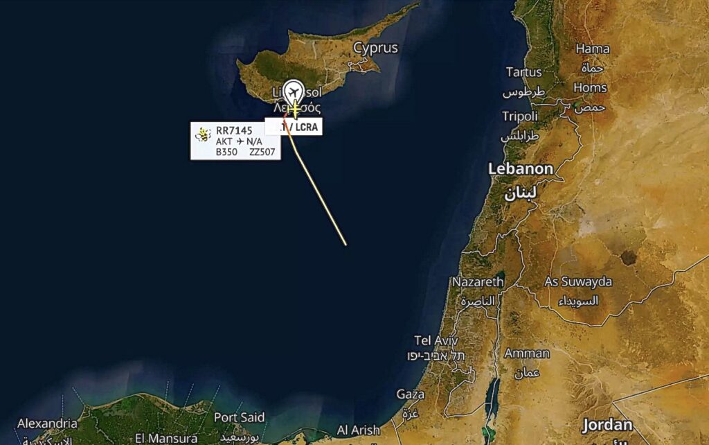 Jalur penerbangan pesawat intai Shadow R1 milik Inggris dalam perjalanan menuju Gaza. Tangkapan layar: RadarBox
