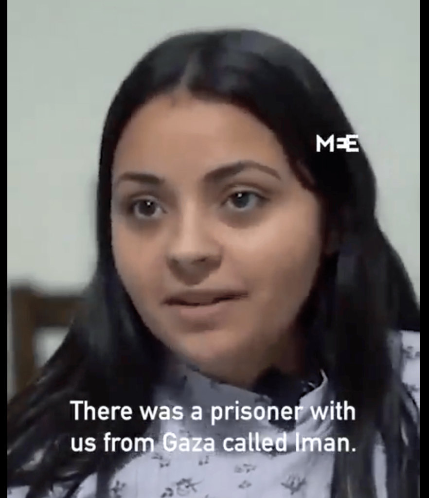 Dalam klip tersebut, dia menceritakan kisah seorang sandera Palestina lainnya yang dia temui di penjara bernama Iman. Hanatsheh menjelaskan bahwa Iman diculik ketika dia sedang bersama putranya yang masih bayi, dan dia dipaksa meninggalkan anaknya di pinggir jalan di Gaza. Mereka tidak tahu apa yang terjadi pada anaknya. (palestine.beehiiv.com)