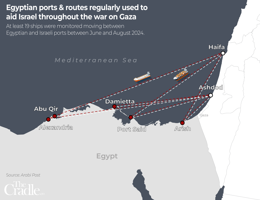 (The Cradle) – Beberapa pelabuhan Mesir telah diubah menjadi pusat utama pengiriman ke ‘Israel’, menurut laporan oleh Arabi Post yang dirilis pada 22 Agustus.