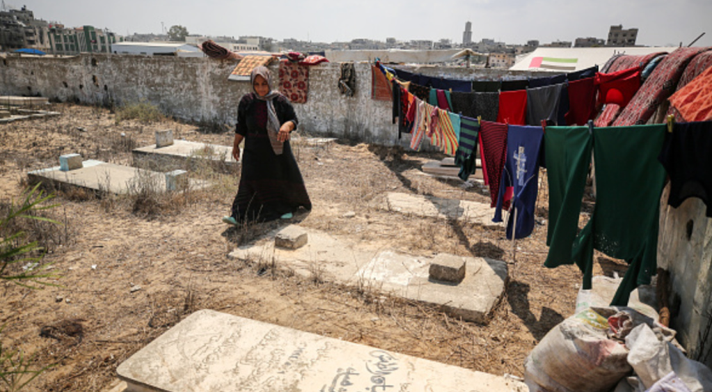 Diusir Paksa Penjajah, Warga Deir al-Balah Gaza Terpaksa Mengungsi di Permakaman