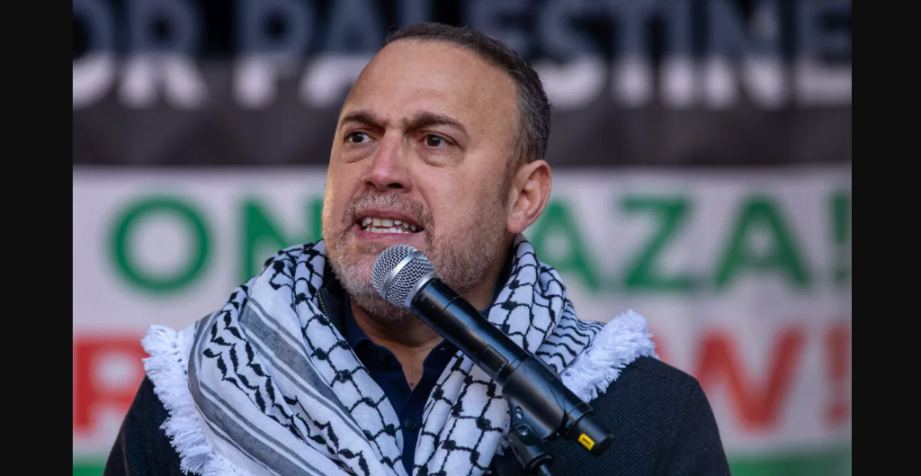 Husam S. Zomlot saat menghadiri demonstrasi di luar Downing Street di London pada 25 November 2023. Foto: Mark Kerrison/In Pictures via Getty Images