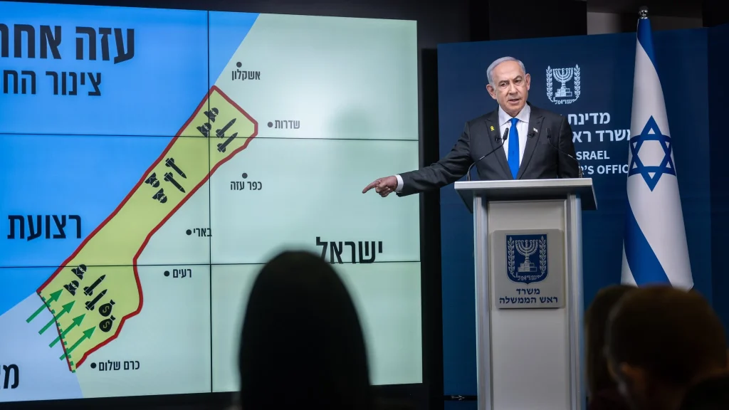 Netanyahu mengadakan konferensi pers pada hari Senin, ia berpendapat bahwa ada “imperatif strategis” untuk mempertahankan pasukan di Koridor Philadelphia.