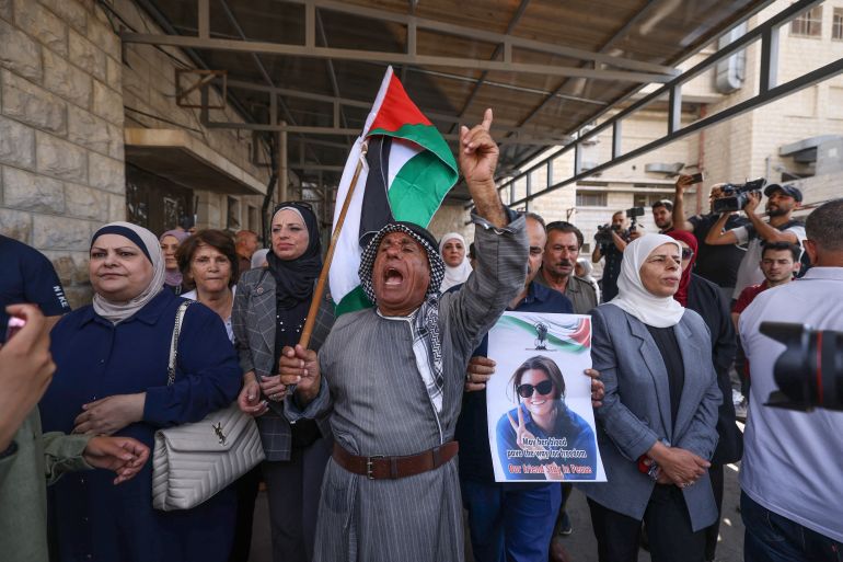 Warga Baitul Maqdis bertakziyah atas kematian Aysenur Ezgi Eygi, 26 tahun, yang dibunuh ketika berpartisipasi dalam aksi protes pekanan terhadap permukiman ilegal ‘Israel’ di dekat Desa Beita, Tepi Barat terjajah. (Jaafar Ashtiyeh/AFP)