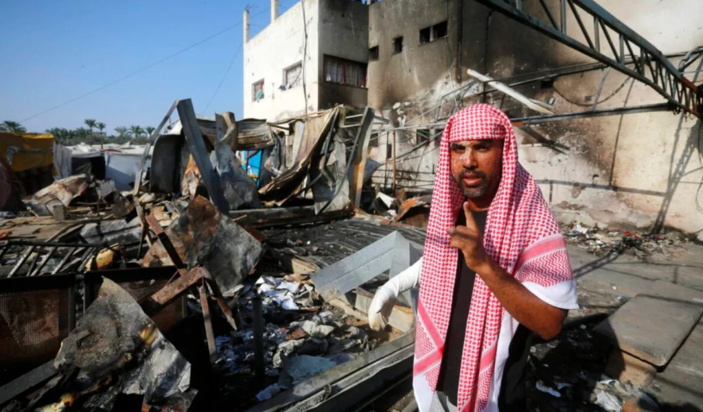 “Saya mendengar suara pengeboman. Saya melihat keluar dan melihat asap hitam pekat di samping tenda kami,” kata Mohammed Al-Dalou, berbicara kepada Reuters di lokasi serangan di Deir Al-Balah, tempat tanah hangus dan puing-puing tergeletak di antara tenda-tenda yang masih berdiri.