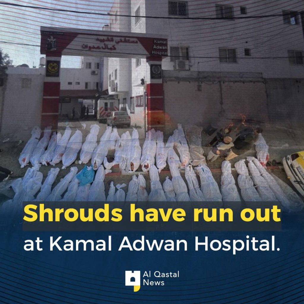 Rumah sakit tersebut juga mengumumkan bahwa mereka telah kehabisan kain kafan yang digunakan untuk menutupi jenazah.
