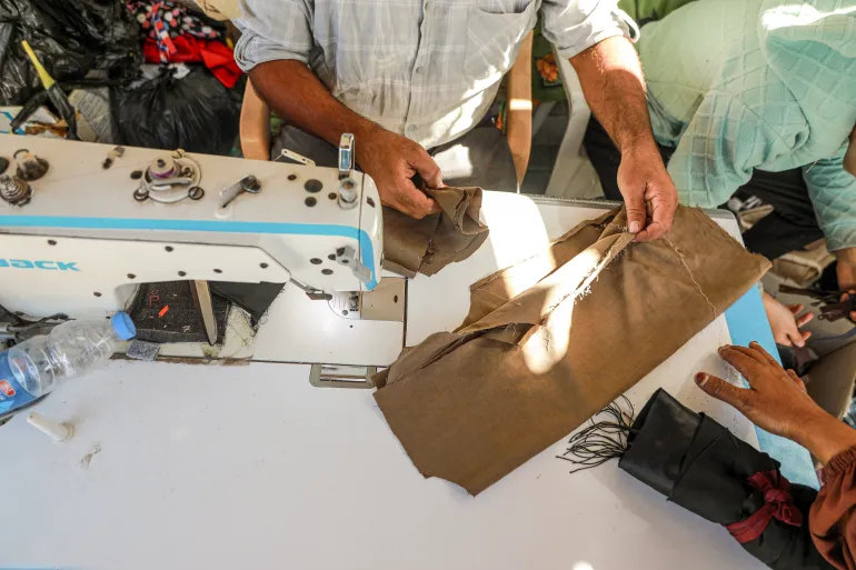 Penjahit sebagian besar bekerja untuk mengubah atau memperbaiki pakaian bekas [Abdelhakim Abu Riash/Al Jazeera]