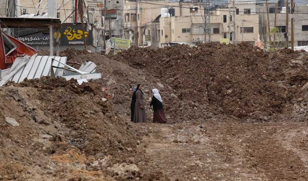 Serdadu ‘Israel’ merusak jalan dengan alat berat dan menghancurkan infrastruktur maupun rumah-rumah warga Baitul Maqdis di Jenin, Tepi Barat, pada tanggal 3 Maret 2025. (Nedal Eshtayah/Anadolu)