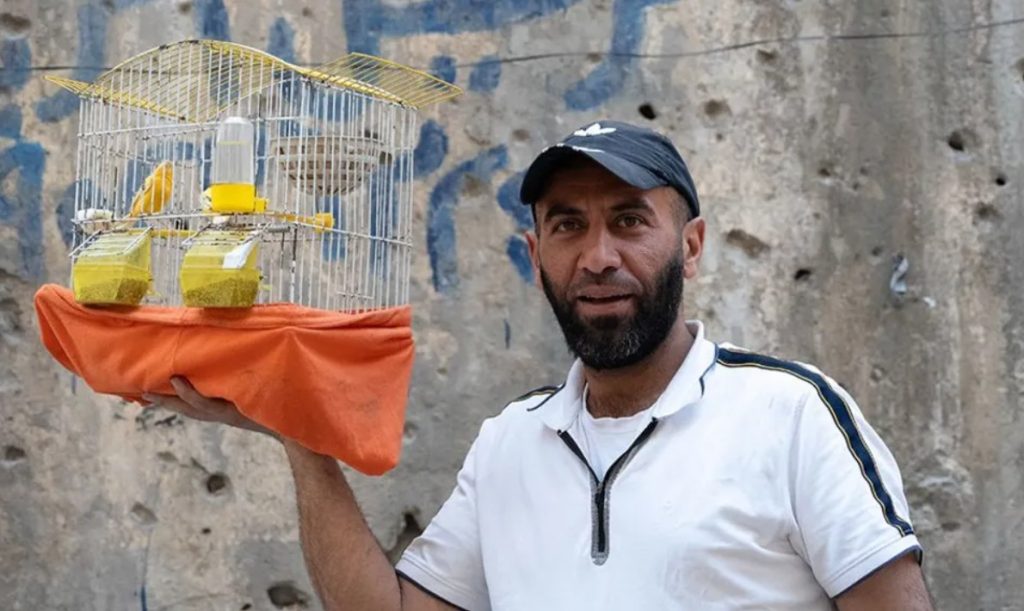 Tukang kayu Yasir al-Nagdali telah mengganti jendela dan langit-langit di rumah yang ia tinggali bersama ibu dan burung peliharaannya. (Rolf Andreason/BBC)