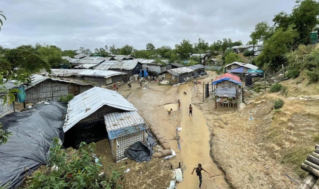 Hujan monsun menyebabkan banjir di kamp pengungsian Nayapara di Teknaf, Bangladesh timur, pada Juli 2021. (UNHCR/Amos Halder)