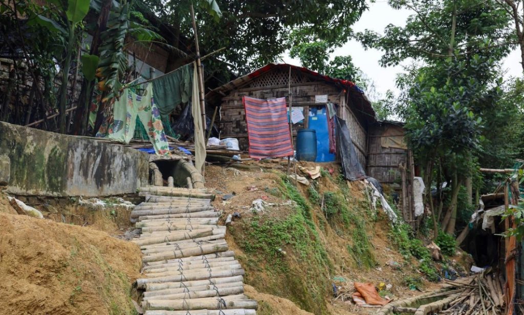 Lereng bukit di kamp Kutupalong terkikis oleh hujan monsun. (UNHCR/Shagufta Shathy)