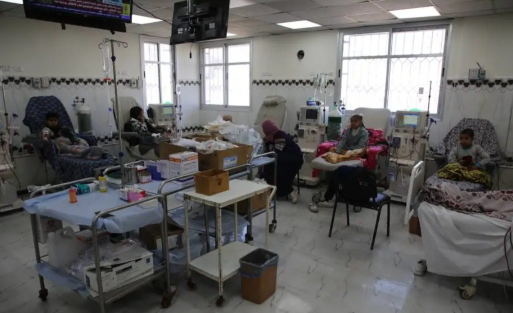 Anak-anak Palestina menerima perawatan medis di departemen dialisis pediatrik di Rumah Sakit Anak Abdel Aziz al-Rantisi di Jalur Gaza pada 6 Maret 2025. Foto: Hamza Z. H. Qraiqea – Anadolu Agency