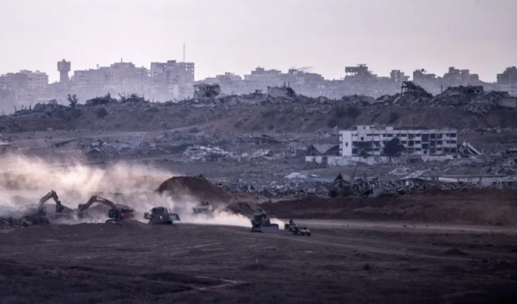 Tank, kendaraan militer, helikopter, dan drone penjajah berkeliaran setelah gencatan senjata dan penarikan serdadu zionis ke dalam “garis kuning”, 14 Oktober 2025. [Mostafa Alkharouf – Anadolu Agency]