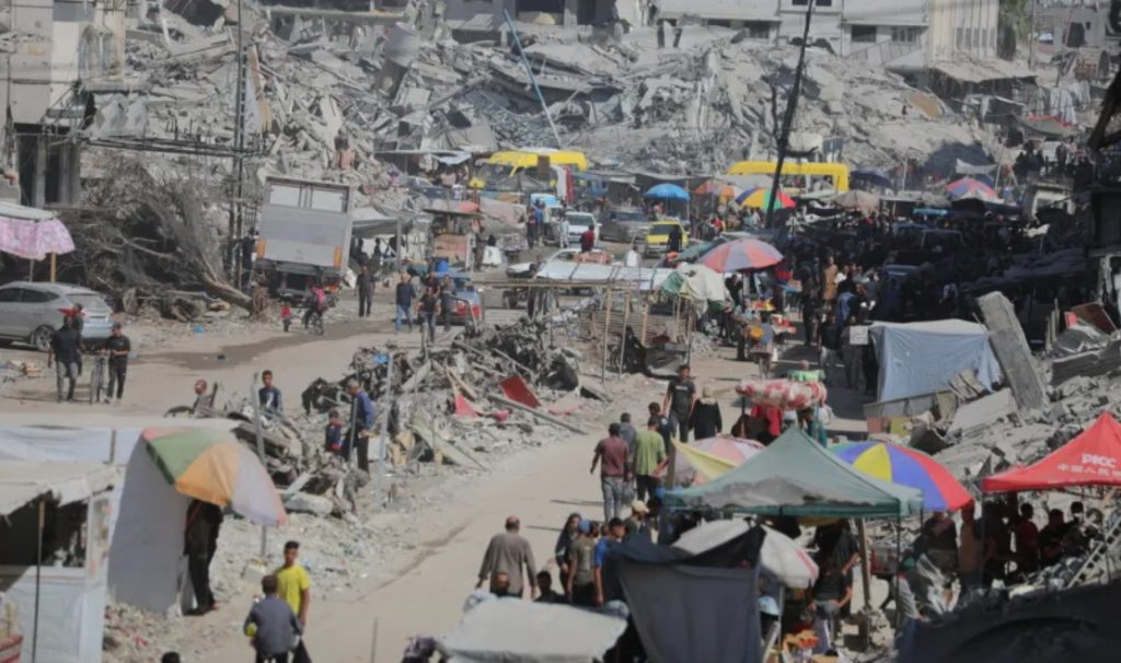 Foto lingkungan Sheikh Ridwan, Kota Gaza, memperlihatkan kerusakan parah yang tersisa setelah serdadu ‘Israel’ hengkang usai gencatan senjata pada 25 Oktober 2025. [Hassan Jedi – Anadolu Agency]
