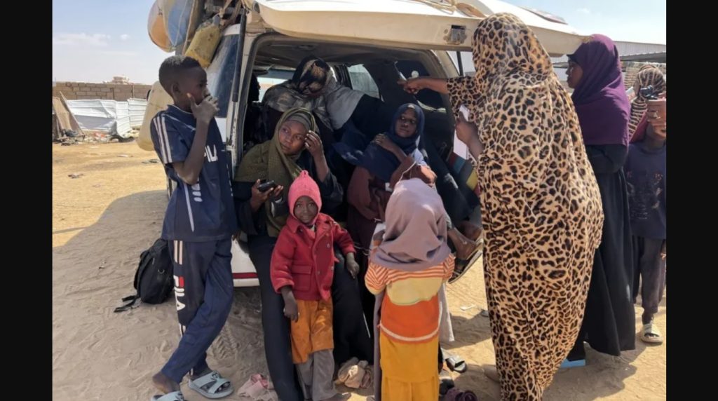 Keluarga-keluarga Sudan yang menyelamatkan diri dari bentrokan di El-Fasher berkumpul di sekitar kendaraan setelah tiba di Al Dabbah, tempat mereka kini hidup dalam kondisi sulit. Suasana di Al Dabbah, Sudan, pada 3 November 2025. [Stringer – Anadolu Agency]