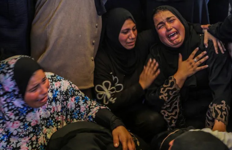 Kerabat korban berduka saat jenazah warga Palestina yang tewas akibat serangan ‘Israel’ di Sheikh Nasser dibawa ke RS Nasser untuk dimakamkan di Khan Yunis, Gaza, 29 Januari 2026. [Abed Rahim Khatib – Anadolu Agency]