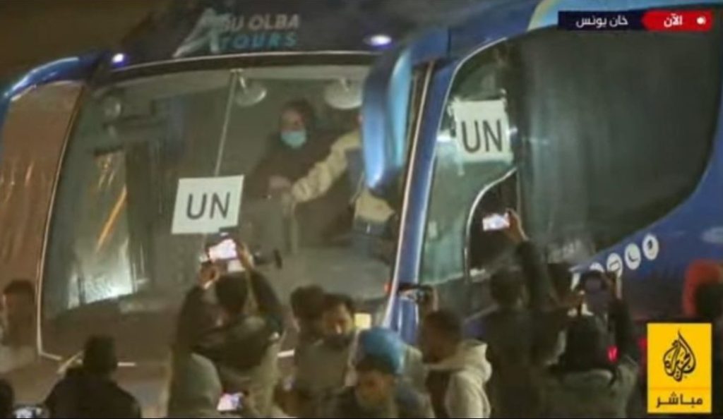 Sumber lokal menyebutkan bus tersebut tiba di Rumah Sakit Nasser, Khan Yunis, di selatan Gaza.