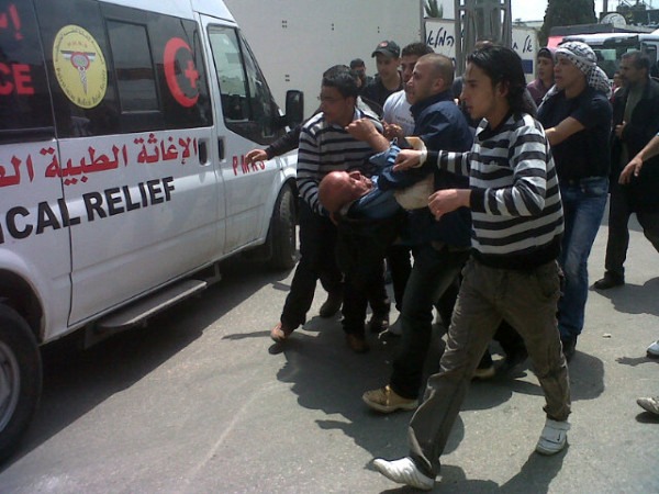 Pada saat ini, demonstrasi serupa sedang berlangsung di Qalandia di Tepi Barat. Tiga orang pengunjukrasa luka-luka di bagian kepala karena tembakan selongsong gas air mata para serdadu.