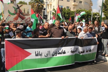 JAKARTA, Ahad (Sahabatalaqsha.com): Ribuan warga Palestina di Tepi Barat mengabaikan berbagai ancaman Zionis dan melangsungkan unjukrasa memperingati Hari Bencana Besar An-Nakbah.