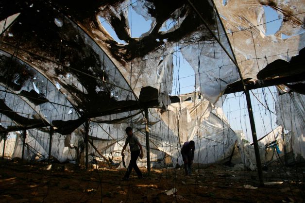 Diantara kandang ayam di peternakan yang diserang Zionis kemarin. foto: AP/Boston.com