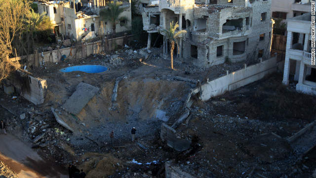 Sebuah kawah yang disebabkan bom yang dijatuhkan Zionis di lingkungan pemukiman penduduk Gaza. foto: Getty Image