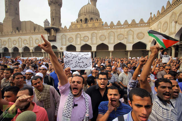 Occupied Palestine melaporkan, sebuah demonstrasi mengutuk serangan Zionis di Gaza digelar di masjid Al-Azhar Kairo setelah shalat Jumat. Para pengunjuk rasa menuntut pemerintah memutuskan hubungan dengan ‘Israel’ dan mengusir duta besar ‘Israel’ dari semua negara Arab. Hari itu, para pengunjuk rasa bergerak ke alun-alun Tahrir di ibukota.