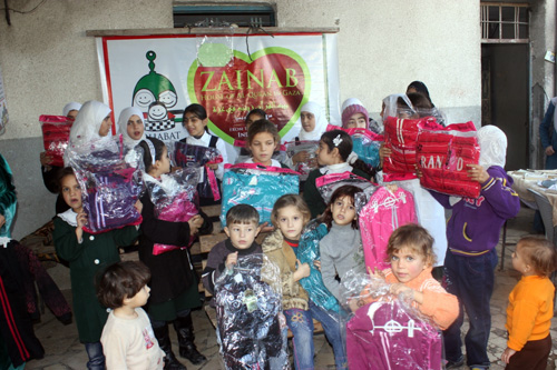 “Terima kasih Ibunya Zainaaaaaaaaab…….. Baju hangatnya sudah kami terima.” foto: Rajaa’ Al-Hirtsani/Sahabat Al-Aqsha