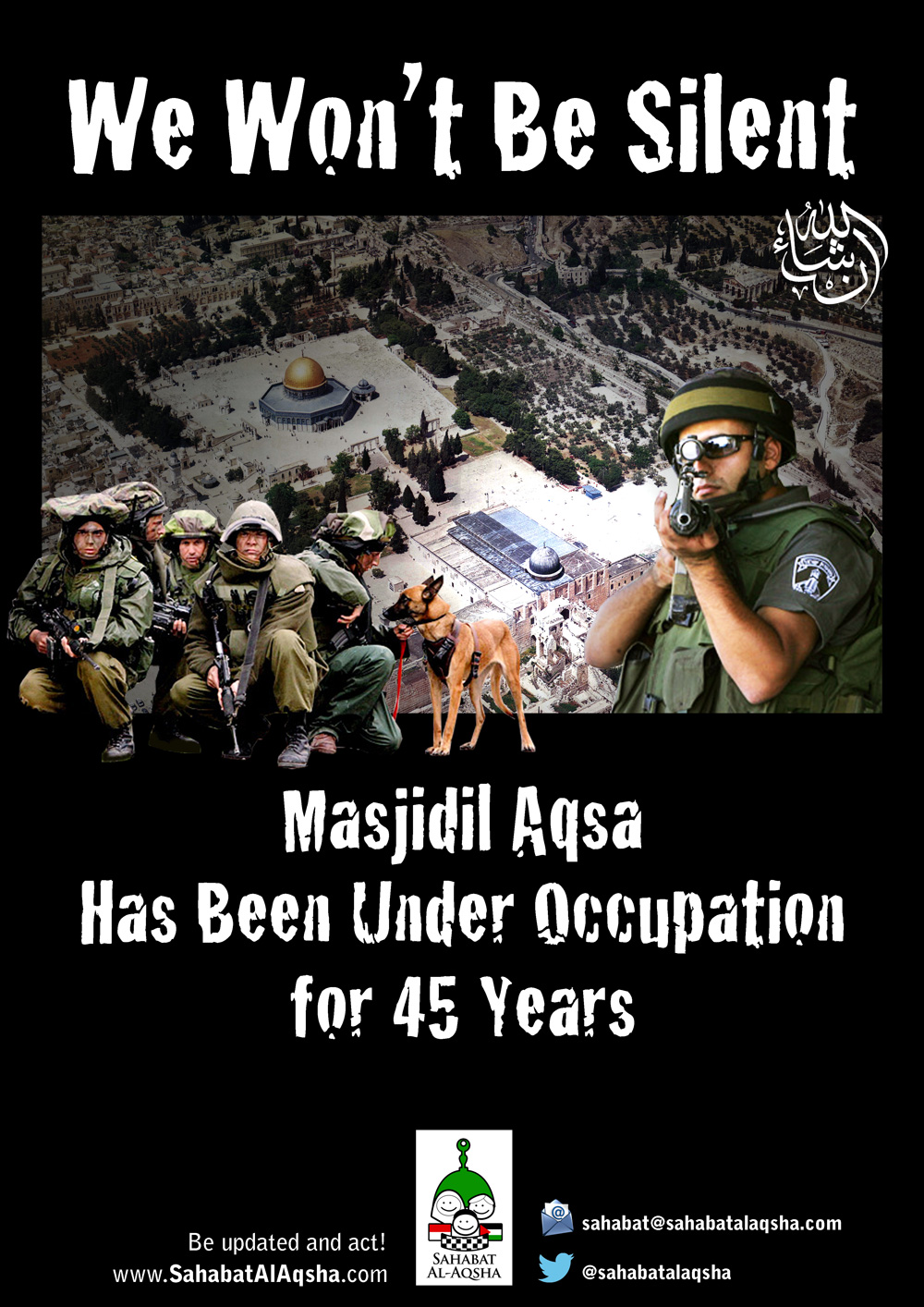 Click the picture for larger version. Thank you for spreading this poster. May Allah reward you fid dunya wal Akhirah. May Allah allow us to do salah at the liberated Masjidil Aqsa. (poster design: Sahabat Al-Aqsha Team)