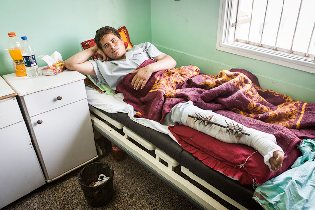 Kemudian Abdullah Marouf, 18, yang saat itu sedang berada di Barat Beit Lahiya mendapat tembakan di kaki kanannya oleh pasukan Zionis hingga mematahkan tibia dan fibulanya (dua tulang panjang di kaki). Memangnya apa yang dilakukan Abdullah hingga separah itu lukanya? Sekitar pukul sembilan pagi pada 21 Januari lalu, Abdullah berada sekitar 250 meter dari pagar perbatasan. Ia tengah mengumpulkan logam bekas bersama kedua saudara laki-lakinya.
