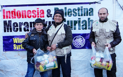 Bantuan yang Sudah Disalurkan: Paket makanan (beras, tepung, minyak zaitun, susu, kacang-kacangan dll.) senilai USD3,000