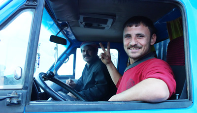 Supir truk dari desa ‘Aqrabat tambah giat dan semangat kedatangan teman sejawat yang jauh-jauh datang melawat. foto: Sahabat Al-Aqsha | Sahabat Suriah