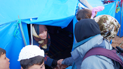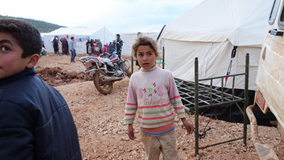 Seorang gadis terkejut menyaksikan kehadiran orang-orang “bukan Arab” di dekat tendanya. Siapa yang ingin memeluknya? foto: Sahabat Al-Aqsha | Sahabat Suriah