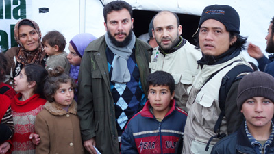 Usamah, berjaket hijau, pemuda ikhlas yang dipercaya para pengungsi menjadi pemimpin mereka. Jangan berhenti merangkul kami… jangan berhenti. foto: Sahabat Al-Aqsha | Sahabat Suriah