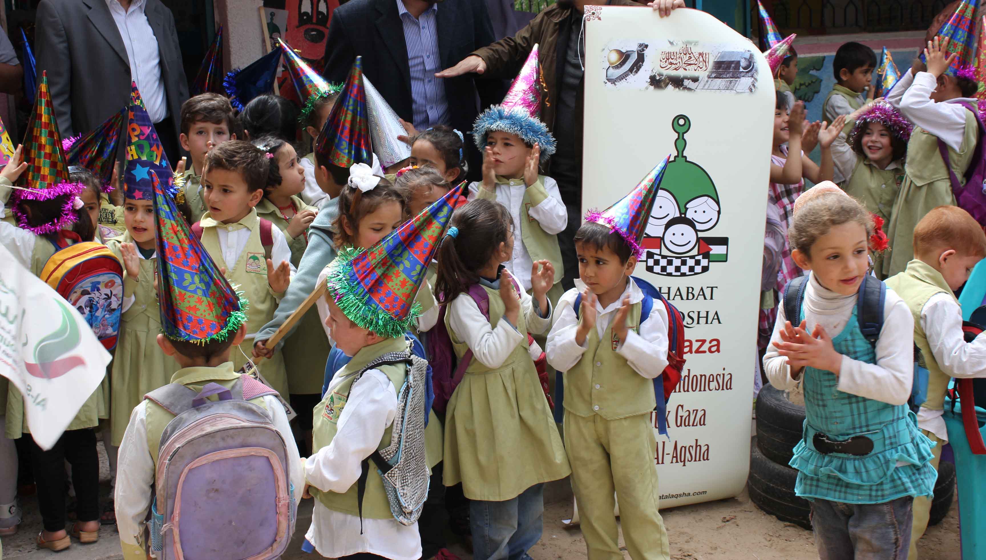 Dalam kunjungan di setiap ruangan kelas TK kita itu, para relawan SA2Gaza disambut ramah dan meriah oleh anak-anak yang berseragam hijau lengkap dengan logo bergambar bintang yang mengedipkan mata seraya tersenyum.