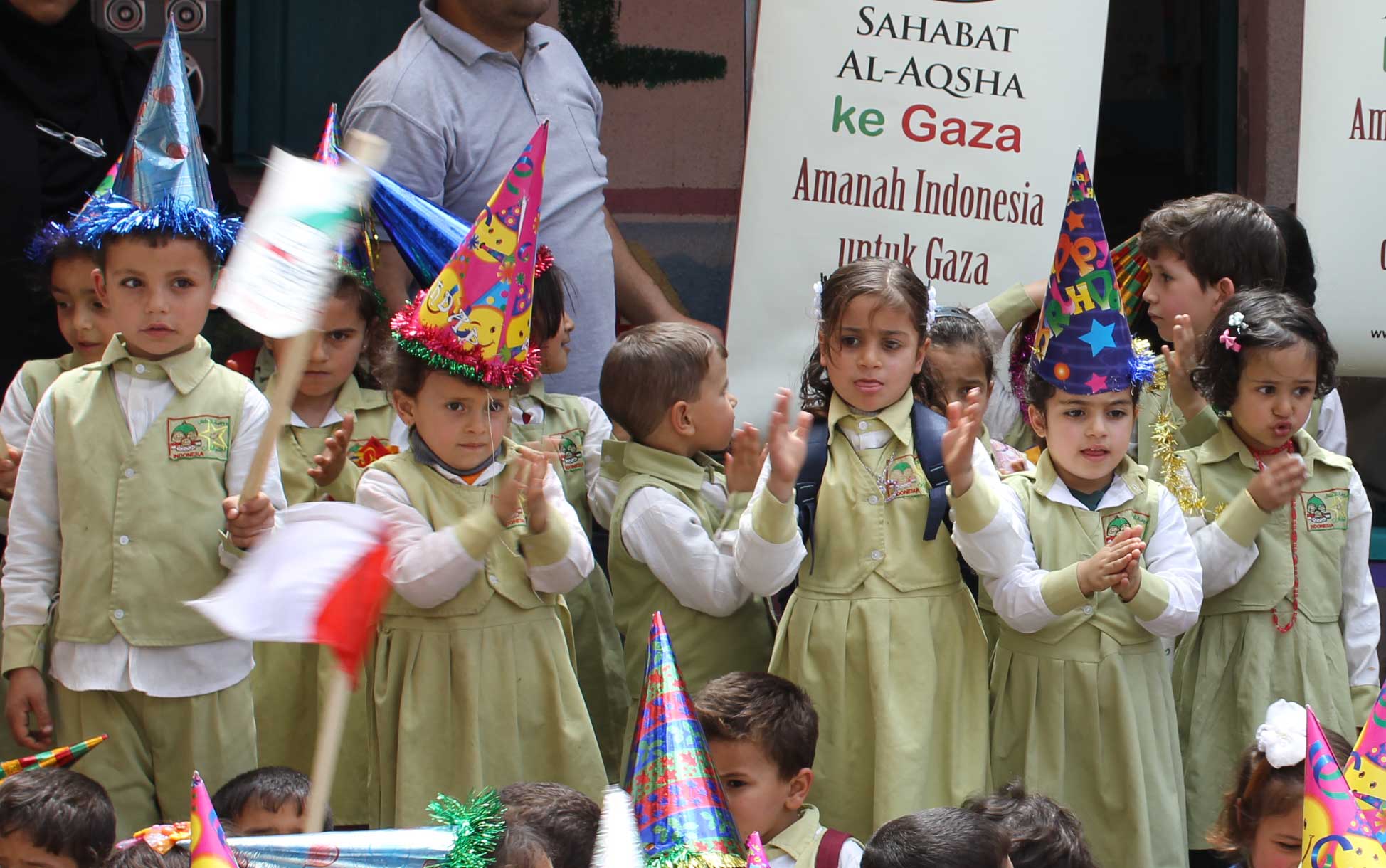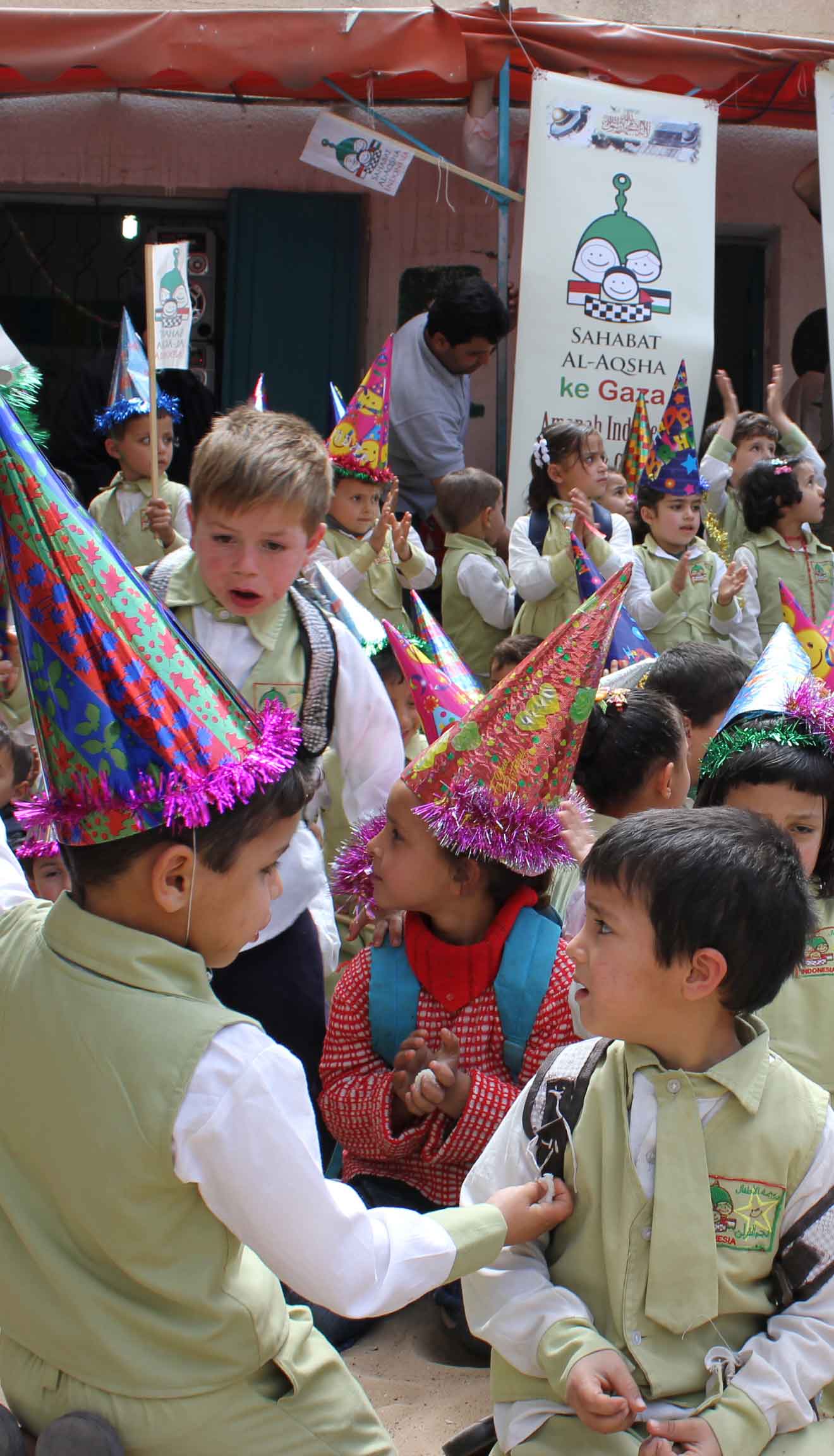 JALUR GAZA, Ahad (Sahabatalaqsha.com): Kemarin pagi Tim Sahabat Al-Aqsha (SA2Gaza) seperti berenang di telaga cinta dan keharuan. Empat orang relawan kita bercengkerama selama dua jam lebih dengan 150 anak-anak TK Bintang Al-Quran di Jabaliya Al-Balad.TK yang terletak di kawasan Gaza Utara ini riuh rendah dengan teriakan anak-anak.Setiap masuk ke kelas, gurunya bertanya kepada anak-anak itu, “Tamu-tamu kita datang dari manaaaaa?!?!?!?”“Indonesiaaaaaa….!!!!”