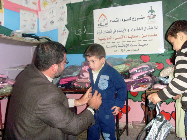 Berlusin-lusin jaket dibagikan kepada anak-anak TK Bintang Al-Quran yang memerlukannya. Wajah-wajahnya sumringah saat mengenakan baju penghangat. Apalagi hawa musim dingin di Gaza mulai menusuki kulit dan tulang itu.