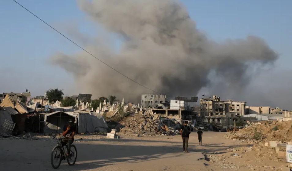 Asap mengepul setelah serangan ‘Israel’ di Kota Gaza, 23 Agustus 2025. (Dawoud Abu Alkas/Reuters)