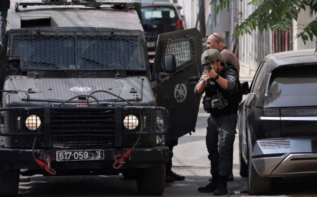 Seorang serdadu penjajah ‘Israel’ mengarahkan senjatanya saat melakukan serangan di kamp pengungsian Balata, sebelah timur kota Nablus, Tepi Barat terjajah, 11 Agustus 2025. (Jaafar Ashtiyeh/AFP)